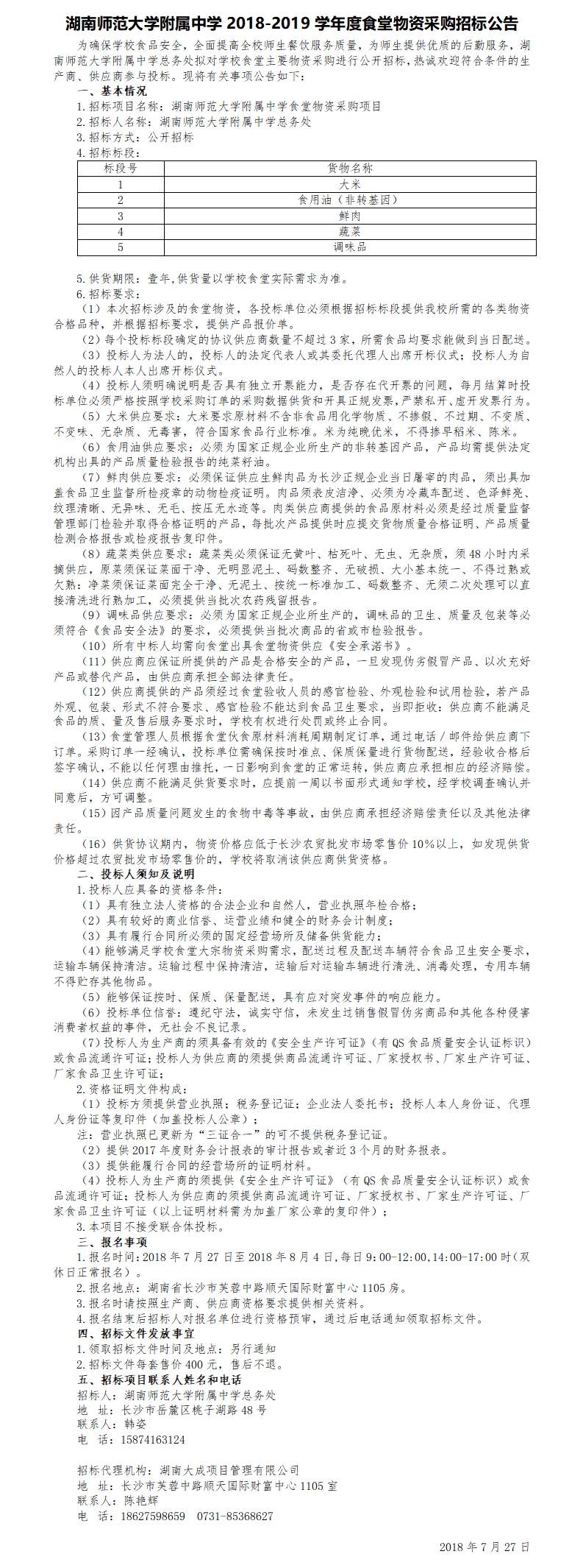 新闻中心 附中新闻 通知公告 最新动态 教育视点 集团学校新闻联播 媒体聚焦 工作安排 微信附中 湖南师范大学附属中学2018-2019学年度食堂物资采购招标公告 发布:系统管理员 来源:未知 日期:2018-07-27 人气:分享到: 上一篇:湖南师大附中学田径场改造工程——网架工程项目中标候选人公示 下一篇:湖南师大附中化学实验室改造项目进行竞争性谈判中标候选人公示 通知公告 更多 湖南师范大学附属中学食堂物资供 湖南师范大学附属中学2024年门面 2024年湖南师大附中桐梓实验中学 湖南师范大学附属中学2024年公开 湖南师范大学附属中学化学实验室 湖南师范大学附属中学2024级七年 最新动态 更多