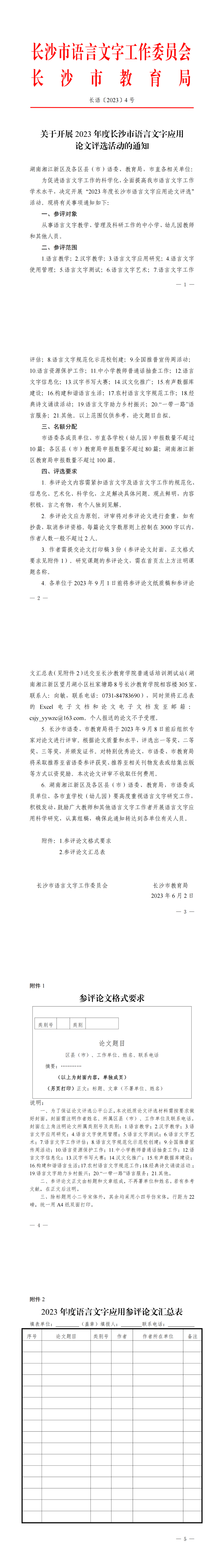 新闻中心 附中新闻 通知公告 最新动态 教育视点 集团学校新闻联播 媒体聚焦 工作安排 微信附中 长沙市语言工作委员会长沙市教育局关于开展2023年度长沙市语言文字应用论文评选活动的通知 发布:系统管理员 来源:未知 日期:2023-06-06 人气:分享到: 上一篇:没有了 下一篇:2023年端午节放假通知 通知公告 更多 2025年劳动节放假通知 关于做好政工专业知识考试工作的 2026年多伦多大学士嘉堡校区绿色 2025年清明节放假通知 湖南师范大学附属中学2025年公开 湖南省教育厅关于做好湖南省教育 最新动态 更多