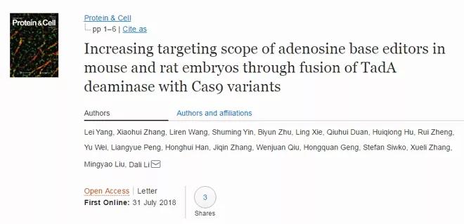 近日,华东师范大学和中山大学的科学家们通力合作,成功改进了ABE基因编辑系统,相关成果于2018年7月31日发表在《protein & cell》杂志上。