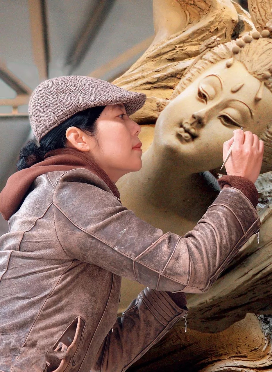 笔者了解到,黄剑的工作环境并不是我们想象中宽敞明亮的工作室,而是在一个嘈杂的工厂里,每个雕塑从初稿到完成有几十道工序,过程非常繁琐,而黄剑又是一个追求完美的人,每道工序,每一次改动她都会亲自监督指导,不放过每一个细节。这种“凝神屏气无言语,两手一心付案牍”的专注与义无反顾,也是“敢为人先”的最好诠释。