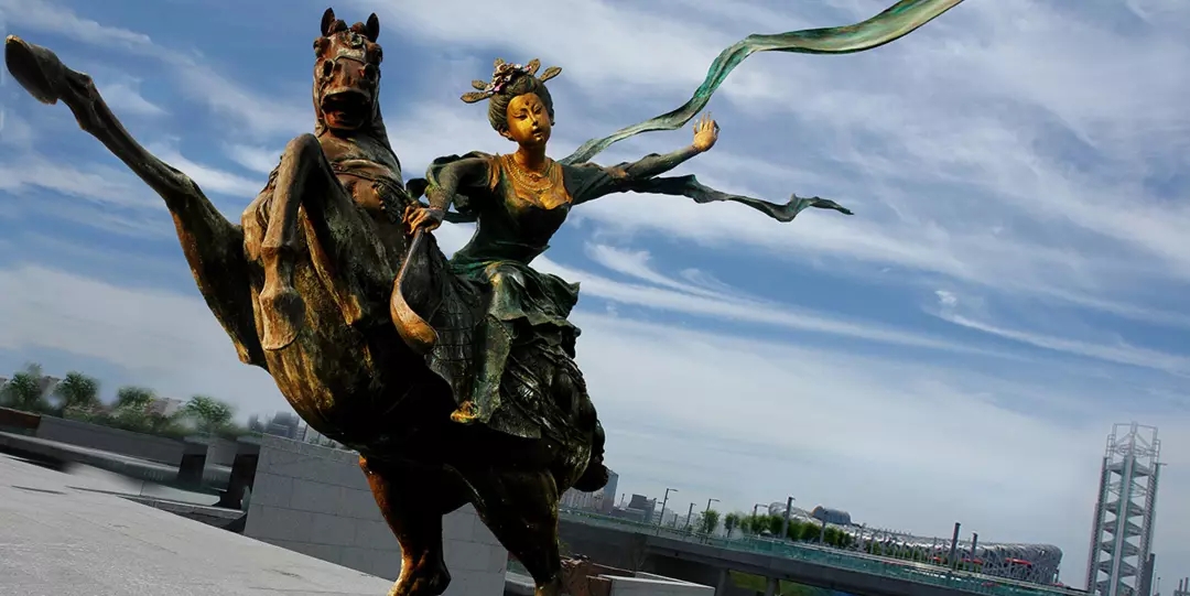 她持彩练当空舞,傲然中华民族自信、自强的风骨。