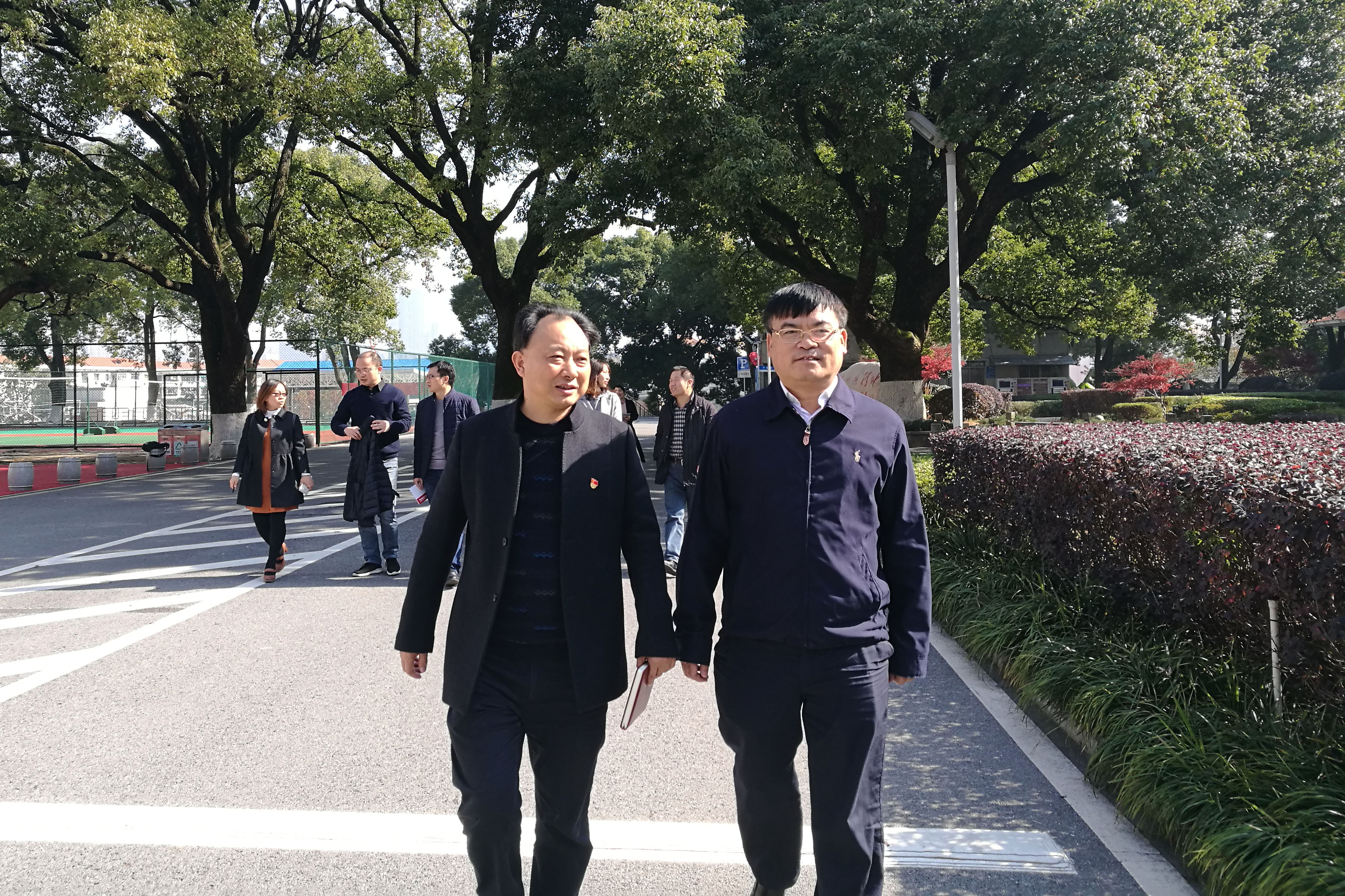 会后,陈迪勋带领考察团参观校园,感受学校优美的自然风光、独到的育人环境。考察团成员对我校静雅的校园环境、深厚的文化底蕴、丰硕的办学成果表示由衷的赞叹,深刻感受到了百年附中自强不息、追求卓越的人文精神以及附中在全国基础教育界勇于创新、示范引领的地位与影响。
