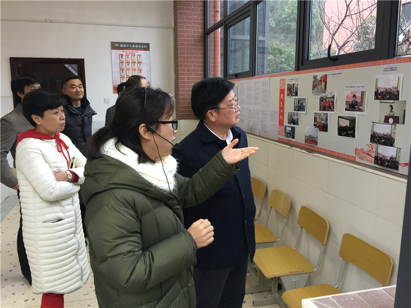 黄月初一行深入一线课堂,听课、评课,与学生和授课老师进行面对面的交流和指导。黄月初对附梅老师认真负责的教学态度表示肯定,对优美的校园环境和学子们活泼大方的精神风貌给予了赞赏,并与同行听课人员就课堂教学方式方法进行了探讨。