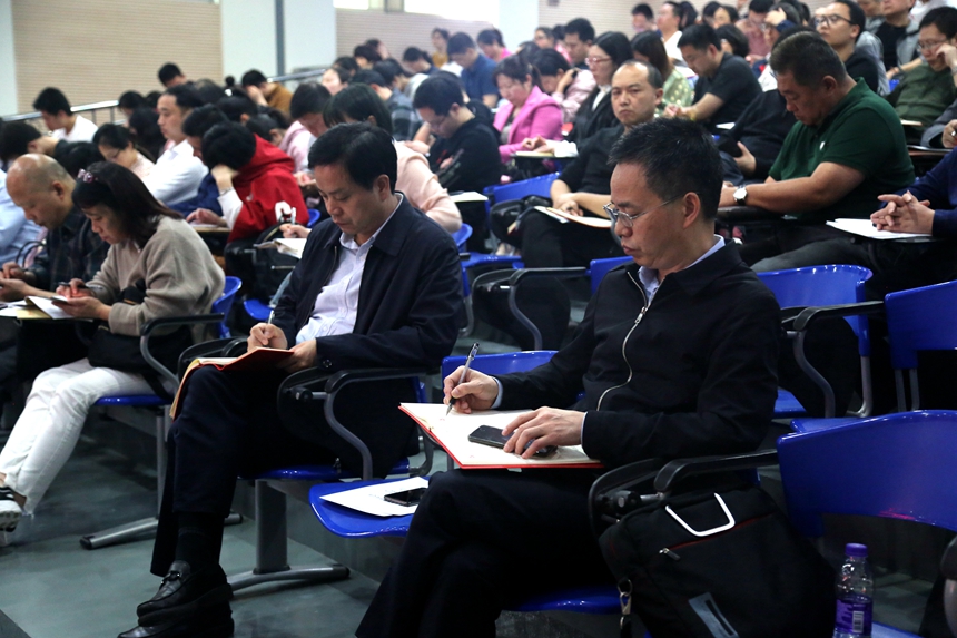 4月19日,我校2018—2019学年度第二学期全校教职工政治学习活动在会议厅开展,校本部近300名在职教职工参加学习。会议由党委书记黄月初主持。