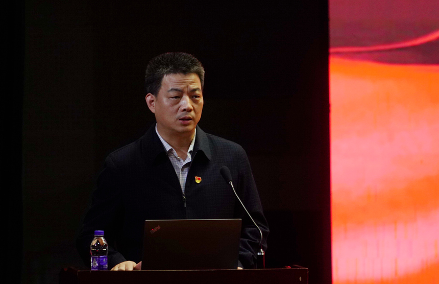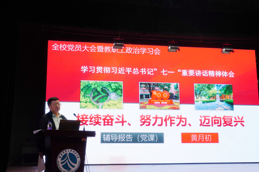 党委书记黄月初以《接续奋斗、努力作为、迈向复兴》为报告主题,从百年辉煌、建党精神、接续奋斗、真抓实干为脉络,分享学习习近平总书记“七一”重要讲话精神心得。辅导报告中,他将百年党史的四个时期特点总结为站起来、发展起来、富起来、强起来,中华民族伟大复兴从而进入了不可逆转的历史进程!