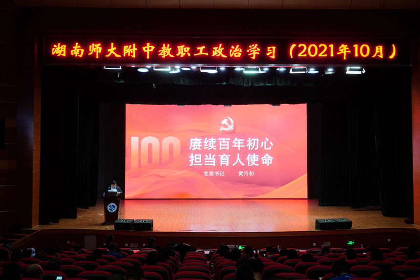 通过百年党史提炼伟大建党精神,并结合附中实际凝练出“兴高潮、联实际、抓落实、见成效”四个关键词,号召全体教职工坚决响应习总书记和党中央的伟大号召,立足新发展阶段,聚焦高质量发展,以奋发有为的实际行动,以奋发昂扬的姿态开启学校高质量发展的新征程。