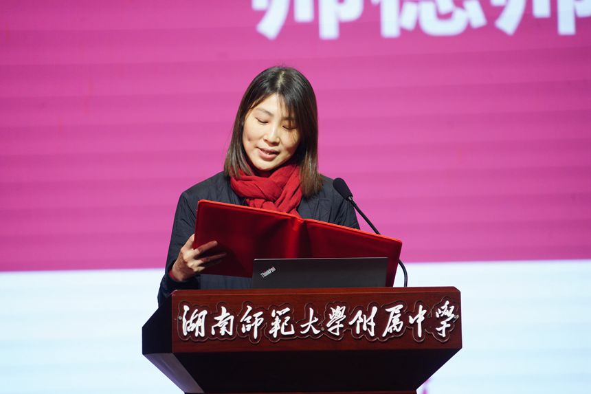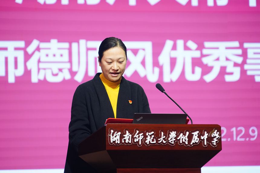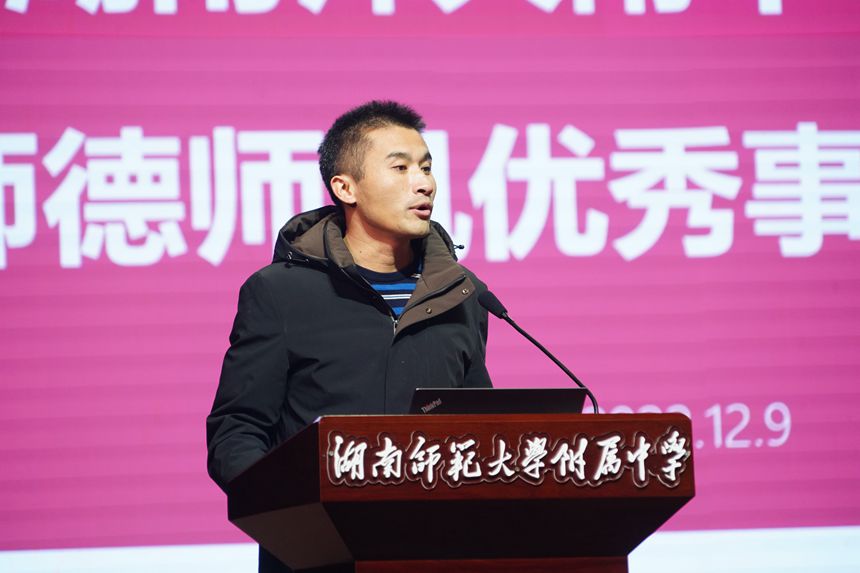 高三语文备课组长刘芳以《平凡的坚守》为题,定位自己是万千教师中最平凡的一个和三尺讲台上最普通的一员,以自己从容、平常的姿态诠释了最美的坚守。高三文科班班主任王丹分享了《爱是最好的教育方法》:以爱为法,爱而有法,爱无定法,想方设法,以灵魂唤醒灵魂,以春晖感化寸草。外派耒阳支教三年的欧阳红英作《用爱浇灌 静待花开》报告,她从教26年,用心上好每一堂课,育得桃李芬芳;支教3年,用爱浇灌老区孩子们的心田。教育教学服务一线多面手姜平贵讲述了《爱岗敬业铸师魂 三尺讲台守初心》,他是长期战斗在教育教学一线的平凡教师,勤勉奉献于学校发展大局的岗位标兵。初中部党支部书记、九年级班主任陈莎筠以《不忘初心扬师德 立德树人铸师魂》为题,她杏坛耕耘16载,爱岗敬业铸师魂,种好育人责任田。