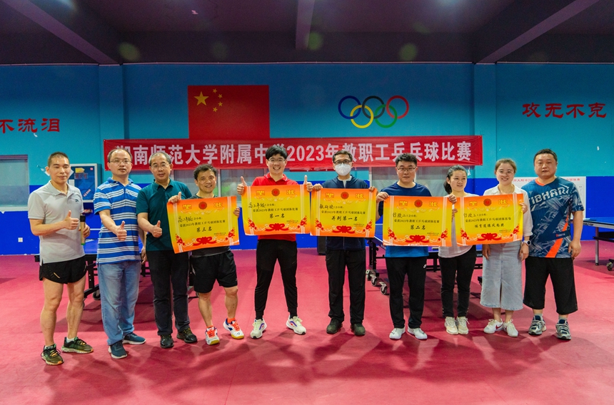 5月18日晚上,学校举行了简约而又隆重的闭幕式,闭幕式由工会体育委员汤彬主持。工会副主席伏炎安对本次教职工乒乓球赛进行了小结,裁判长朱辉宣布了比赛结果,校办公室主任莫晖、党委办公室主任吴卿等为获奖队伍颁奖,吴卿主任宣布2023年我校教职工乒乓球比赛圆满闭幕。