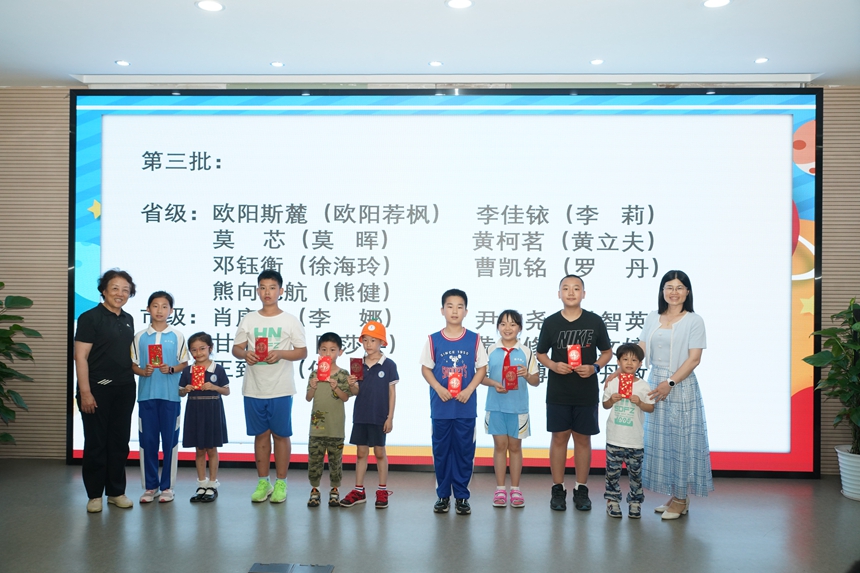 表彰大会在学校图书馆报告厅举行,由学校团委副书记温宇主持。首先,蔡卫红致辞,她赞扬了“附二代”们的优异表现和出色成绩,祝福他们幸福成长;陈迪勋与孩子们激情互动,从做人、求学和生活等方面,勉励孩子们讲礼貌、好好学习、好好吃饭、好好锻炼,全面发展,争做祖国的栋梁之材。李春莲带领孩子们在《挖呀挖呀挖》《小老鼠上灯台》《拍手歌》等游戏中放肆嗨了一番。随后,伏炎安宣读获奖名单,并对获奖的小朋友们表示祝贺;接着,关工委领导门为孩子们颁发了奖金,118名小朋友获得了奖励,并愉快地与颁奖嘉宾合影留念。