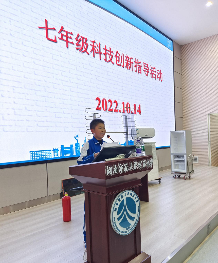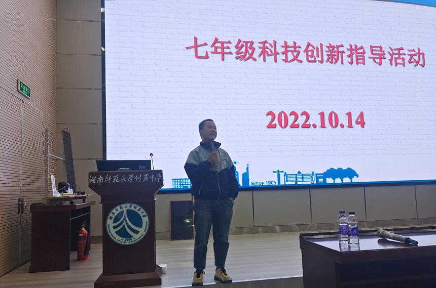 苏校长作活动开场致辞。苏校长一直关注与支持学校素质教育的推进,关心学生科学核心素养的培养与提升。首先,苏校长向支持我校科技创新指导活动的熊教授致以衷心感谢,同时指出此次活动是集人才培养、科技创新、科普教育于一体的活动。科学技术改变世界,改变生活,苏校长强调湖南师大附中历来重视科技创新,科技创新要从早从小抓起,力求开好头,起好步。最后苏校长表达了对七年级全体学生的殷切希望,希望七年级所有学生能在此次活动中学有所获、学有所成。