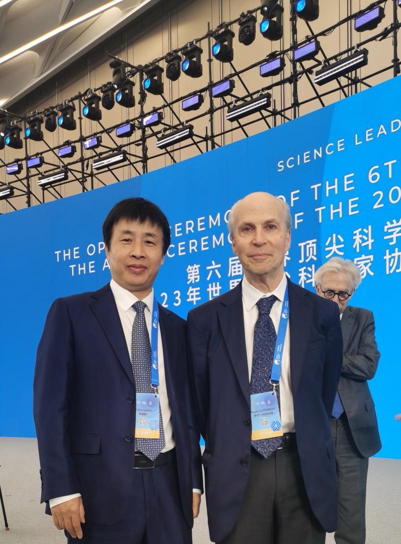 李湘黔与世界顶尖科学家协会主席诺贝尔奖获得者罗杰·科恩伯合影