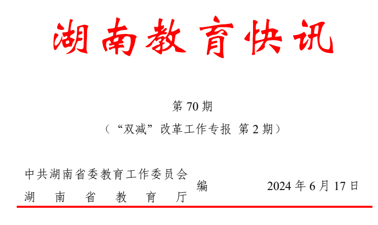 近日,湖南省教育厅发布的6月17日《湖南教育快讯》第70期(“双减”改革工作专报 第2期)中,对湖南师范大学附属中学(简称“湖南师大附中”)在“双减”中做好科学教育加法创新案例----“与高校共建实验室”获教育厅表彰。