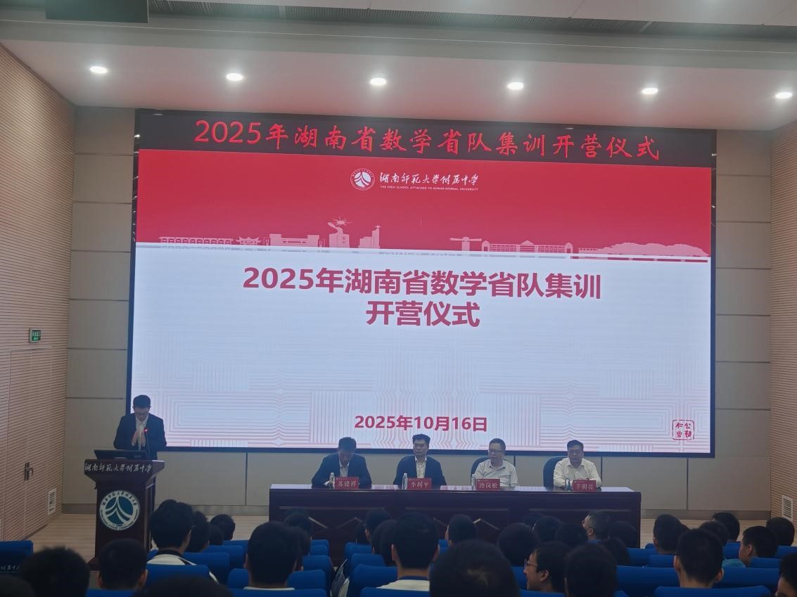 10月16日,2025年湖南省数学省队集训在湖南师大附中开营。上海大学教授、前国家队领队、2020年国际数学Paul Erdős奖得主冷岗松教授,湖南省数学竞赛委员会主任、湖南师范大学数学与统计学院院长李利平教授,湖南师范大学数学奥林匹克研究所所长、湖南省数学竞赛总教练羊明亮,湖南师大附中校长苏建祥,湖南师大附中数学教研组长汤礼达出席开营仪式。
