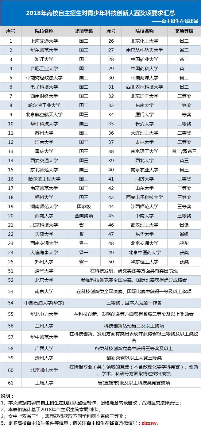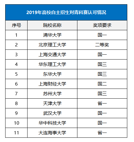 全国青少年年科技创新大赛作为一项权威科创活动,获得奖项的考生,有机会报名高校自主招生。2019年现已有11所高校明确认可。