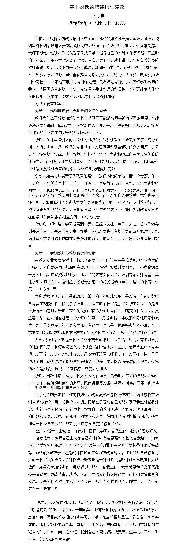 学校部门 论文评比 《探索》电子期刊 发表论文 基于对话的师资培训漫谈 发布:管若婧 来源:科研与教师发展处 日期:2019-12-24 人气:分享到: 上一篇:论高中舞蹈课程的美育定位及其思考 下一篇:普通高中生涯规划教育的定位与作为——以湖南师大附中生涯规划教育为例 通知公告 更多 2024年端午节放假通知 湖南师范大学附属中学2024年寒假 关于湖南师范大学开展“师大好网 湖南师大附中2024年端午节教职工 湖南师大附中2023-2024学年度考核工 湖南师大附中2024年公开招聘专任 最新动态 更多