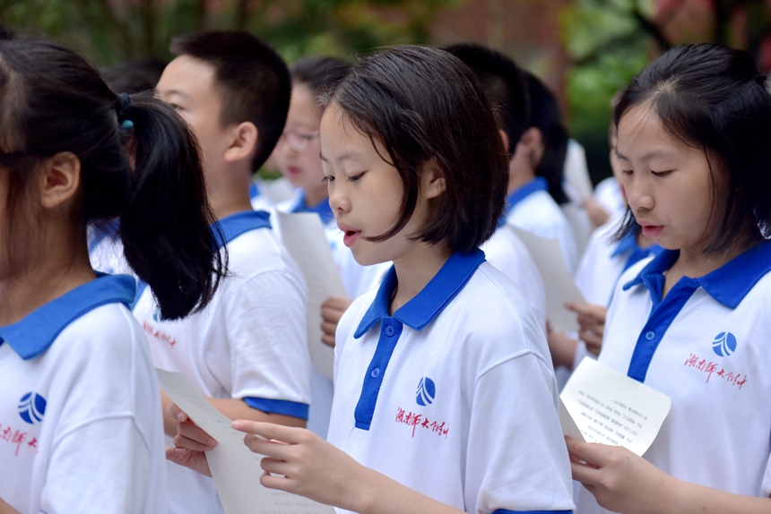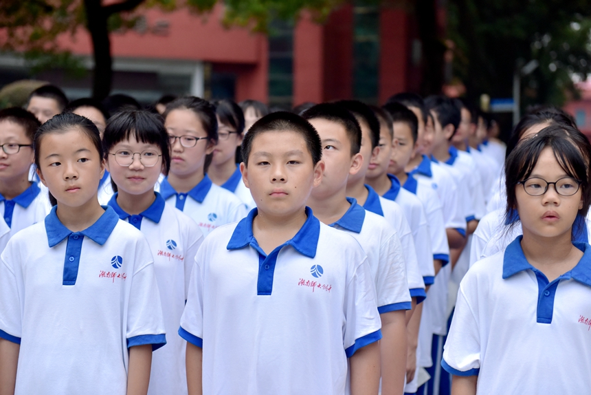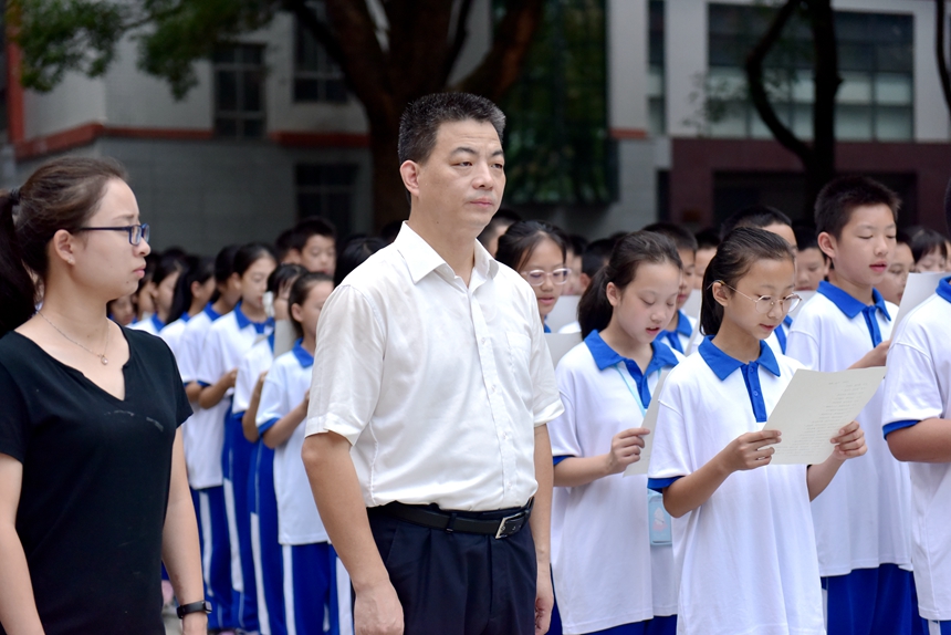 9月28日, 学校师生代表在孔子雕像广场前集会,共同纪念孔子诞辰2572周年,仪式由初2103班孙丁睿同学主持。