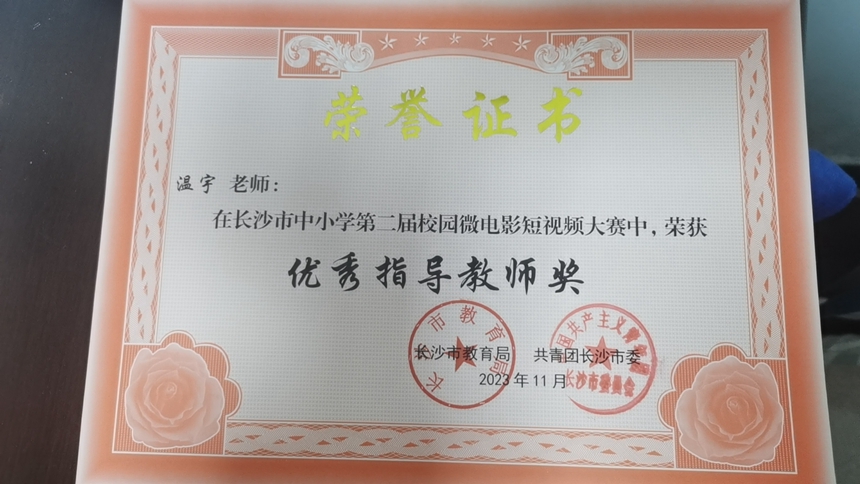 12月9日,“光影讴歌新时代,踔厉奋发新征程”长沙市中小学第二届校园微电影、短视频大赛颁奖典礼在湖南教育电视台举行,本届微电影短视频大赛由长沙市教育局、共青团长沙市委共同举办,共评出微电影作品一等奖18部、二等奖20部、三等奖24部、短视频作品一等奖29部、二等奖28部、三等奖59部、单项最佳奖项15个、最受欢迎影片4部、最佳指导教师57人、优秀组织奖5个。