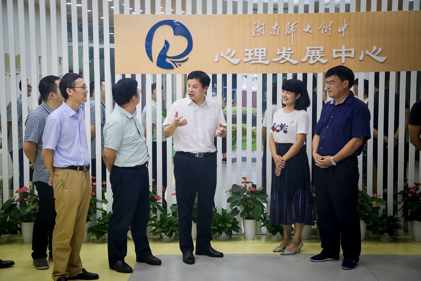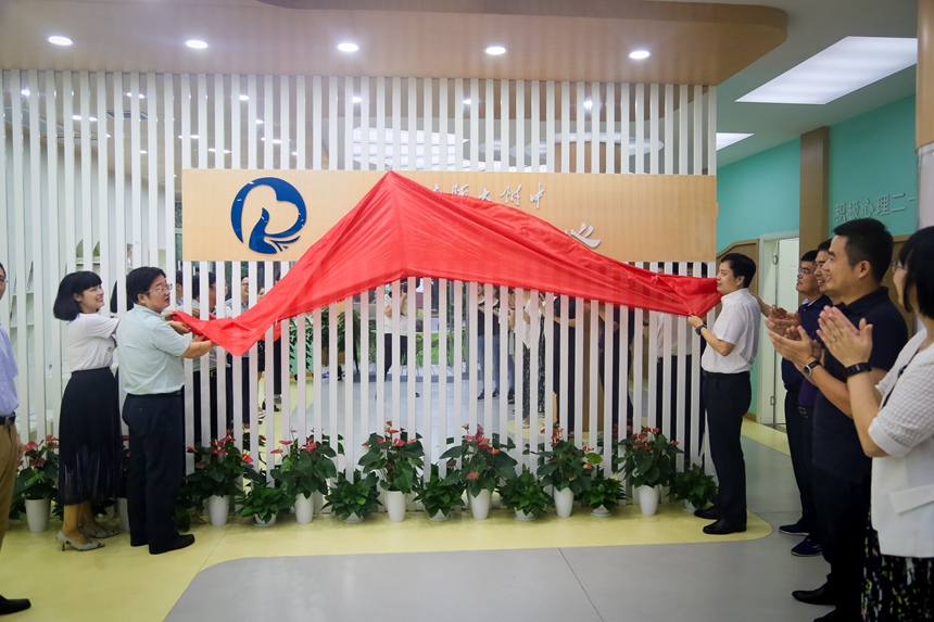 9月19日下午,我校举行“四中心一工作室”揭牌仪式。校长谢永红,副校长黄月初、陈迪勋,学生发展处主任郭在时、副主任吴卿,团委书记李钊,湖南广益实验中学副校长蔡毅、湖南师大附中博才实验中学副校长黄宇鸿、湖南师大附中梅溪湖中学副校长张志、湖南师大附中高新实验中学副校长罗爱斌、湖南师大附中耒阳分校副校长李智敏,“四中心一工作室”负责人、核心成员出席了揭牌仪式。