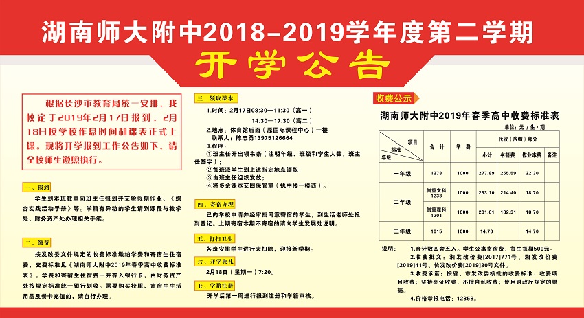 阳光服务 校务公开 学生食堂 学校规划 心理咨询 湖南师大附中2018—2019学年度第二学期开学公告 发布:系统管理员 来源:未知 日期:2019-04-16 人气:分享到: 上一篇:湖南师范大学附属中学“十三五”改革与发展规划纲要 下一篇:没有了 通知公告 更多 湖南师范大学附属中学2024年度废 湖南师范大学附属中学化学实验室 湖南师范大学附属中学出国(境) 关于开展2024年暑假教科研论文评 湖南师范大学附属中学2024年暑假 关于申报“十四五”课题2024年度 最新动态 更多