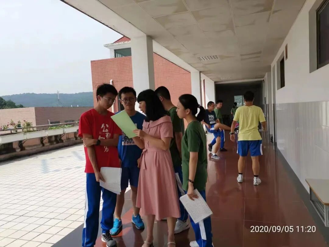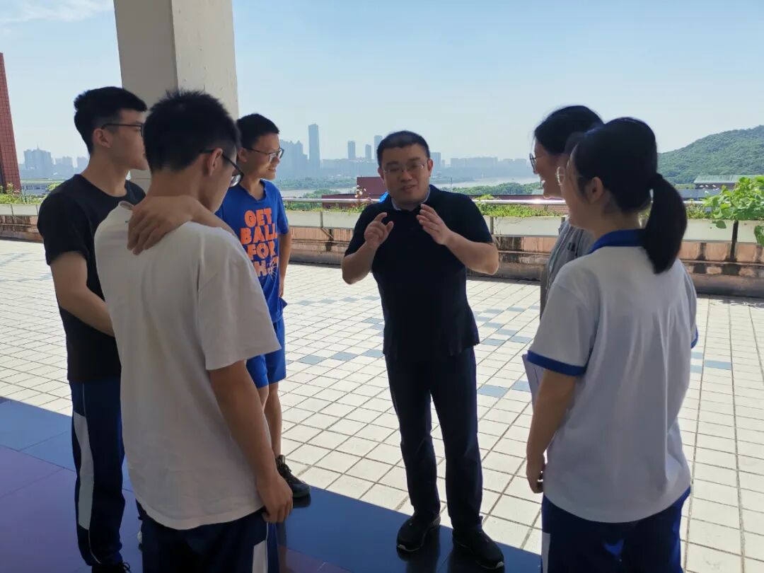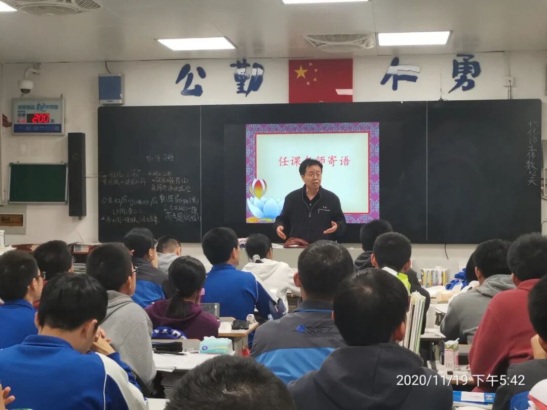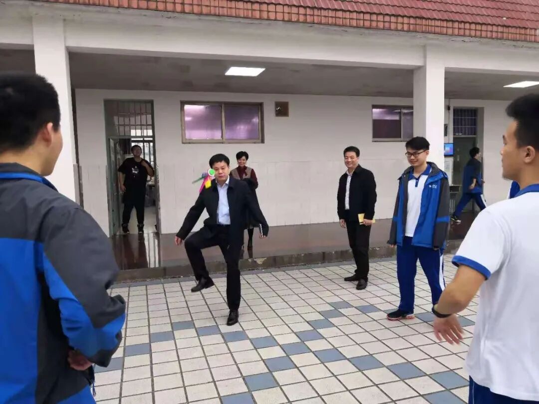 特别要说说我们的谢校长和苏校长。谢校长作为一校之长,会在周会上慷慨发言培养我们家国情怀,也会常常爬上教学楼六楼,悄悄地看看我们早读,会在课间问问同学的学习状况,甚至还在阳台上加入我们的毽子游戏呢!苏校长作为我们班的联系校领导,在两百天、百日誓师以及许多其它关键时候给我们加油鼓劲,提供锦囊妙策,如他说的 “三力”,即体力、笔力、心力,很是精辟。