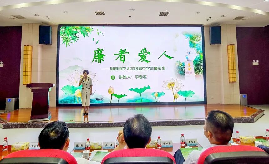 在“清廉岳麓共建体”清廉故事分享会上,她走上湖南省党史陈列馆的红色讲堂,讲述《廉者爱人》的附中故事,产生良好的社会反响,为献礼“二十大”好声音作出附中贡献。