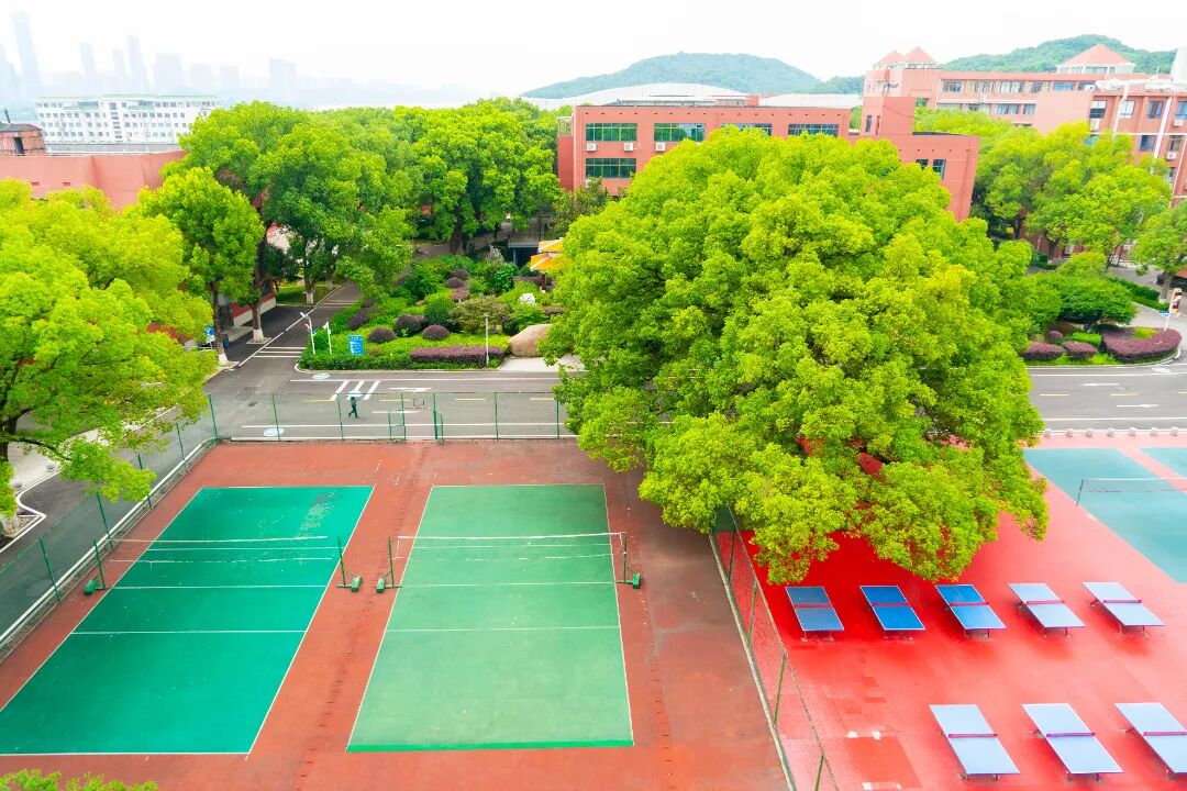 少年们在篮球、排球、羽毛球、乒乓球场挥洒汗水