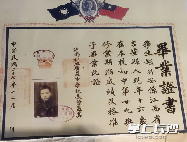 民国时,湖南私立广益中学(今湖南师大附中)给学生颁发的毕业证书。
