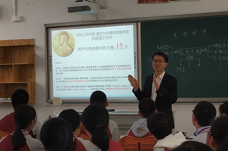 新闻中心 附中新闻 通知公告 最新动态 教育视点 集团学校新闻联播 媒体聚焦 工作安排 微信附中 生物组黄俊老师携课参加第四届全国高中“审美课堂”教学研讨活动 发布:校办公室 来源:课程与教学处 日期:2018-11-11 人气:分享到: 11月1日,由中国教育科学研究院、教育部中学校长培训中心、江阴市教师发展中心联合主办的第四届全国高中“审美课堂”教学研讨活动在江苏省南菁高级中学举行。活动内容包括校内外名教师同课异构、专家评课、分学科研讨和专家讲座等。中国教科院邀请的教师代表、教育部中学校长培训中心邀请的学校教师代表、南菁高级中学特邀的学校教师代表及来自全国各地高中学校的教师代表们参加了此次研讨活动。 我校生物教研组黄俊老师作为南菁高级中学特邀省外名师代表参加此次活动,并执教高三一轮复习课《免疫调节》。黄俊老师的课堂设计在深入思考“审美课堂”研讨主题的同时,围绕我校“研究型高中”建设主题,设置四大教学环节:考向研析、课前研读、课堂研讨、试题研创。整堂课复习主线清晰、紧扣考点、突破重难点,课堂教学效果突出,课后学生掌声不断。与会专家及教师一致认为该课具有启发性,为一轮复习课堂的开展开辟了新思路。 (供稿 课程教学处) 上一篇:聚焦化学核心素养 解读高中化学新课标 ——长沙市肖鹏飞中学化学名师工作室活动在我校举行 下一篇:语文组吴音莹老师赴新疆吐鲁番调研交流并作专题讲座 通知公告 更多 2025年劳动节放假通知 关于做好政工专业知识考试工作的 2026年多伦多大学士嘉堡校区绿色 2025年清明节放假通知 湖南师范大学附属中学2025年公开 湖南省教育厅关于做好湖南省教育 最新动态 更多