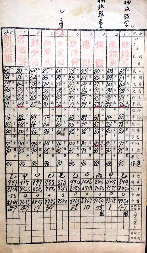 我校校史馆馆藏朱镕基在广益中学求学时的成绩单