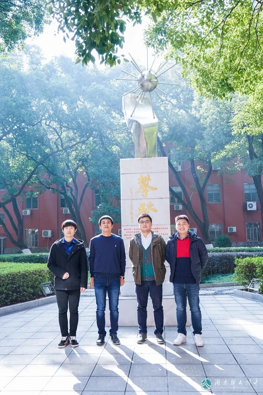 湖南师大附中物理组引进了袁江涛(右二)、李毛川(左一)、杨一鸣(右一)三位高学历、高层次人才。图片均为长沙晚报通讯员 苏晓玲 摄