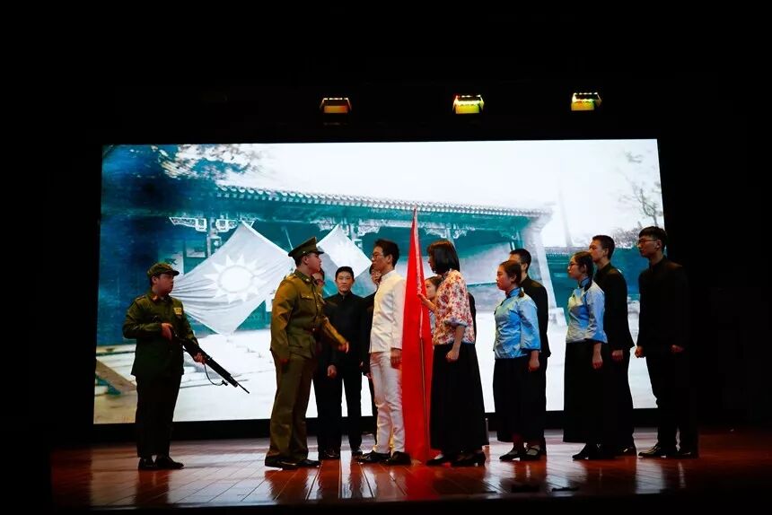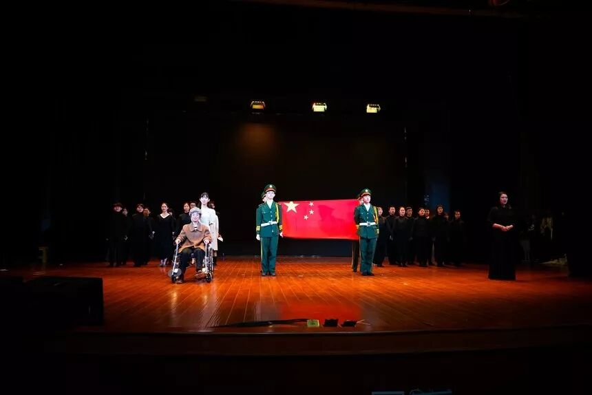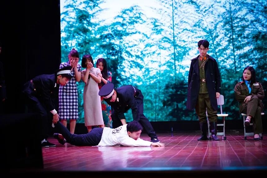 1819班的《隐形守护者》特别邀请成子通老师同台演出,他们以“地下党”工作为中心,塑造了许多为革命隐姓埋名、忍辱负重的同志,他们正直无私的形象让台下的观众也为之动容。