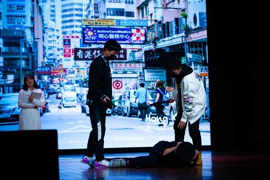 1813班的《九七》,表演者通过精湛的演技,体现出热血青年只身抵抗香港暴徒的勇敢,观众也被他们的精神所打动。
