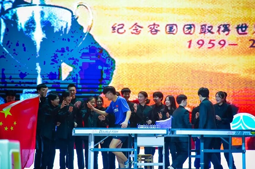 1822班的同学带来了《容国团》,为我们展现了这位运动员夺冠路上所经历的困阻,容国团不忘爱国,拒绝假球,积极准备比赛,终成为世界冠军。22班的同学不仅表演出色,还展现了他们乒乓球的特长和他们“此时不搏更待何时”的精神风貌。