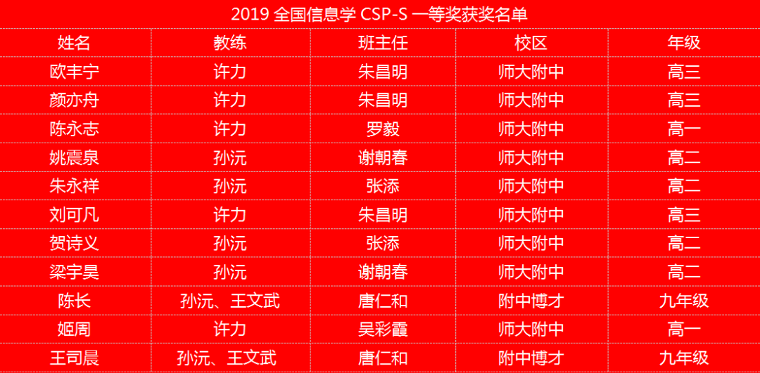 谨此,向所有获奖的同学和主教练以及信息组、各年级组表示热烈祝贺!向辛勤培育他们成长的班主任老师和各位科任老师表示衷心感谢,向全校师生报喜!希望所有获奖同学再接再厉,在即将到来的省队选拔赛中再创佳绩,为校争光!