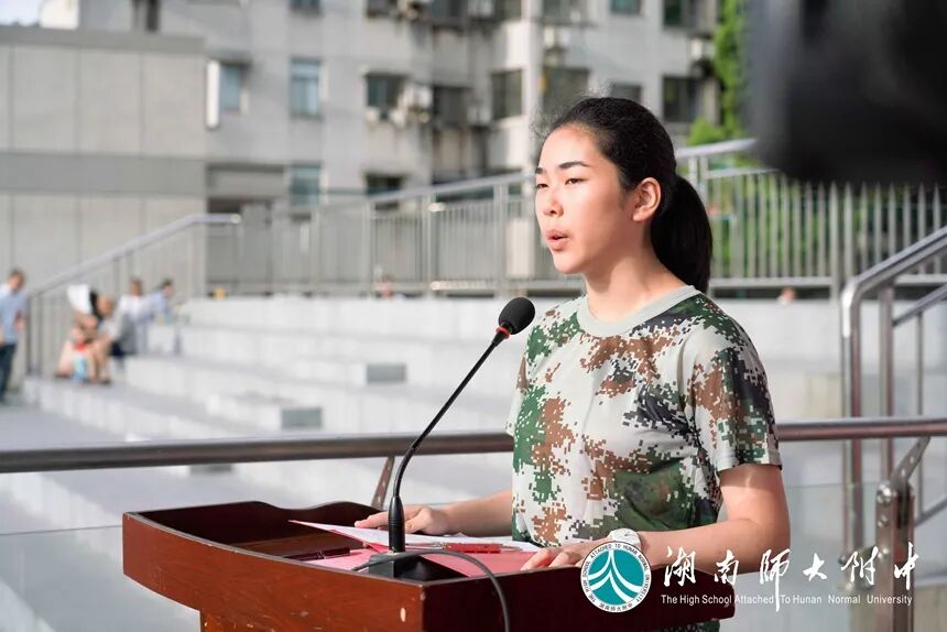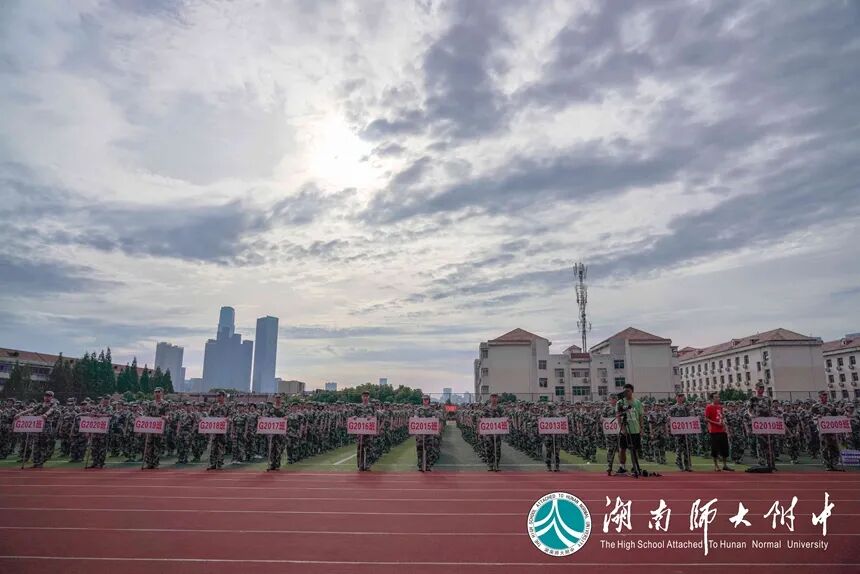 苏建祥作军训动员讲话。他说,与近年不同的是,除高一新同学外,今年还有七年级新同学参加军训,这是我校自2006年停招初中学生以来,恢复初中招生的首届同学。随后,他从国防教育、素质教育、教学改革等方面阐述了学生参加军训的重要意义。今年,教育部和中央军委训练管理部在全国范围联合遴选“国防特色教育示范学校”,积极探索形成“军地合作、军民融合、院校联建”的国防特色教育模式。示范学校建设是深入贯彻习近平强军思想、落实军民融合发展战略的创新实践,我校与国防科技大学作为全国首批、湖南省唯一结队的学校入选,可喜可贺!这是上级部门对我校长期以来在国防教育方面取得成绩的充分肯定,也是对我校未来更有效开展好国防教育的殷切期盼!本次军训,所有教官都由国防科技大学派驻,我校国防特色教育焕发新气象、开启新征程。最后,苏建祥对全体参训同学提出四点要求:疫情防控,抓细抓实;服从命令,严格要求;刻苦训练,磨砺品质;相互尊重,团结共进。