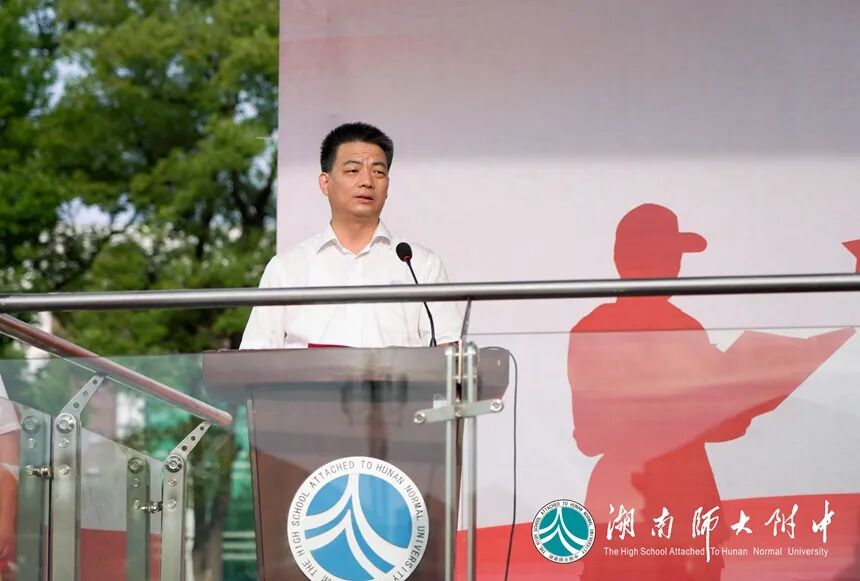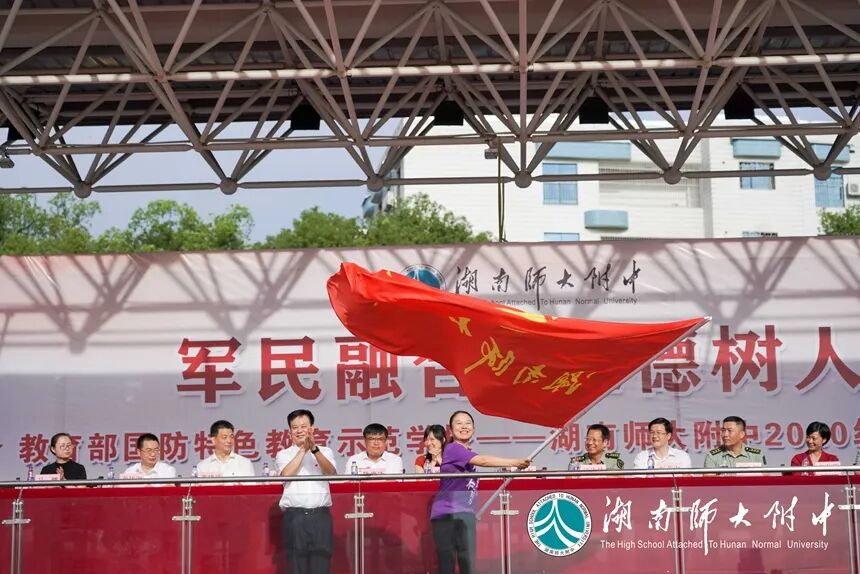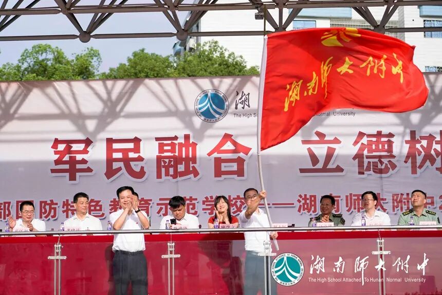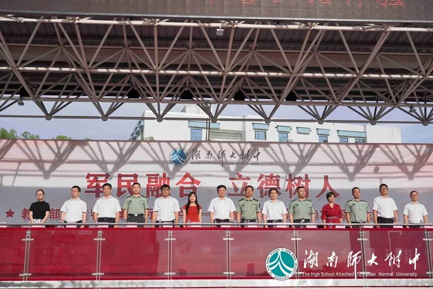 长沙市教育局学生处处长廖学文,国防科技大学教务处副处长汪诗林,军事基础教育学院学员一大队政委崔小健、一大队二队政治教导员郑茂森、一大队六队政治教导员高兴亮,湖南师大附中校长谢永红,党委副书记彭荣宏,副校长、工会主席陈迪勋,纪检书记李春莲,副校长苏建祥、蔡任湘,挂职副校长杜军在主席台就坐。仪式由德育与学生发展处副主任张磊主持。