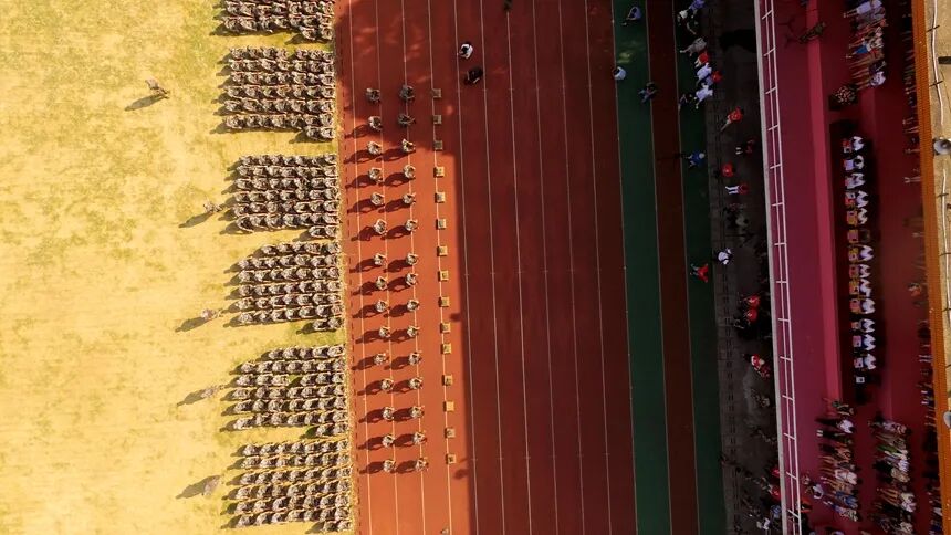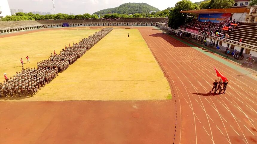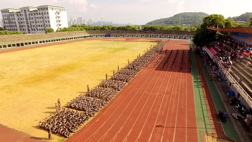 随后,国防科技大学学员教官团进行入场展示。训练有素的教官们向师生们进行了队列展示,动作刚劲有力,口号掷地有声,飒爽英姿成为同学们向往的风景线。