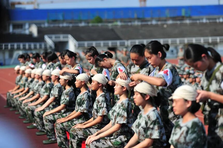 在接下来一周的时间里,同学们将完成队列训练、内务训练、消防逃生演练、紧急集合等科目的训练;开展荣军教育,聆听国防法规、人民军队性质宗旨和光荣传统、军事思想、军事科技、现代国防、国际战略环境、高技术战争等内容的军事知识讲座;开展军歌教唱与军歌合唱比赛、内务整理比赛等丰富多彩的活动。