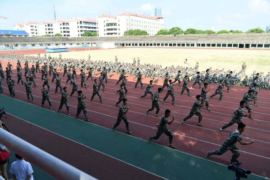 8月19日上午,我校2020级七年级、高一新生“军营生活体验”开营仪式在田径场举行。全体七年级、高一年级班主任和学生参加了开营仪式。