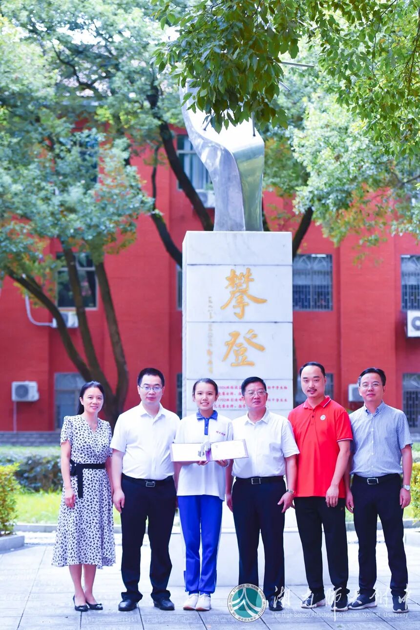这几位新生非常幸运,在攀登碑前遇到了刚收到清华大学录取通知书的学姐刘牧杨。