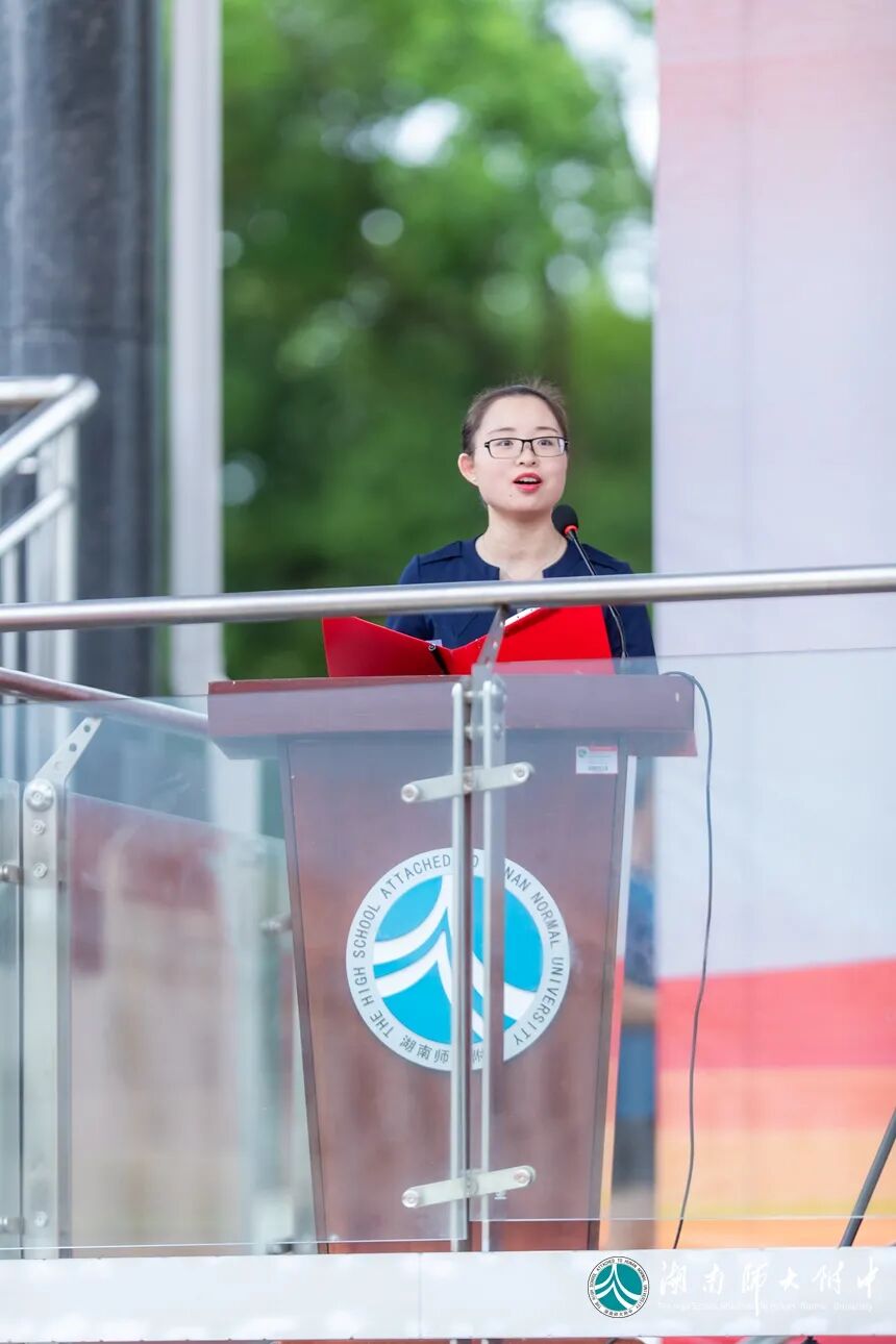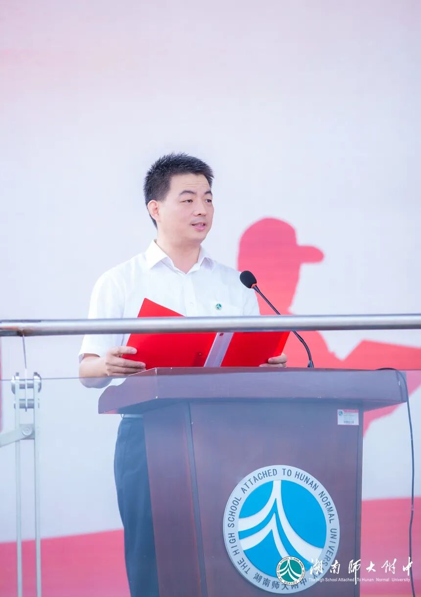 国防科技大学教务处副处长汪诗林大校、参谋李君神少校,军事基础教育学院学员一大队大队长何华强上校,学员一大队二队政治教导员郑茂森少校,一大队六队政治教导员高兴亮少校,我校校长谢永红,党委书记黄月初,党委副书记彭荣宏,副校长、工会主席陈迪勋,纪检书记李春莲,副校长苏建祥、蔡任湘,挂职副校长杜军,高一年级组组长王建,初一年级组组长吴菲在主席台就坐。大会由德育与学生发展处主任吴卿主持。