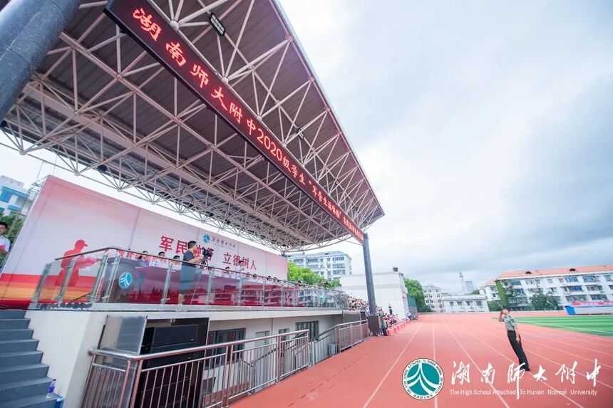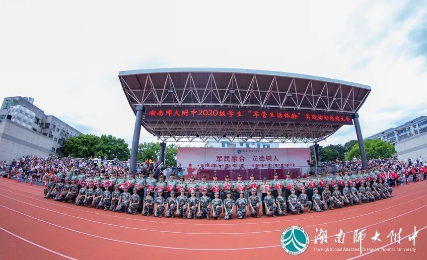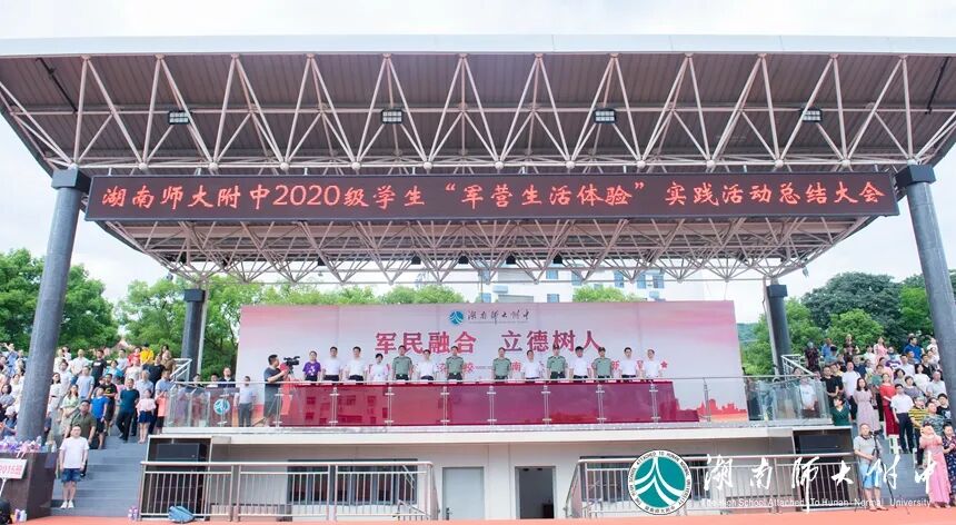 8月25日上午,湖南师大附中2020级学生“军营生活体验”活动总结大会在体育运动中心田径场举行。