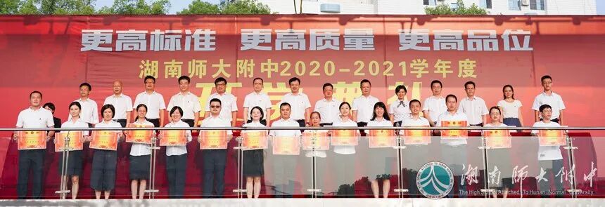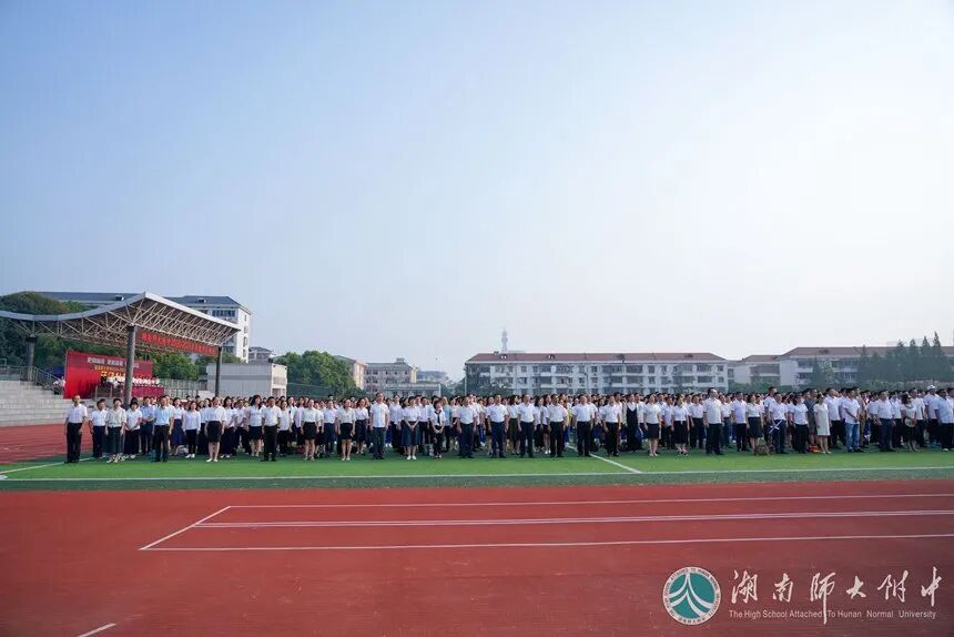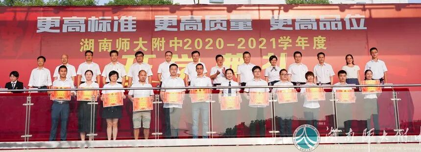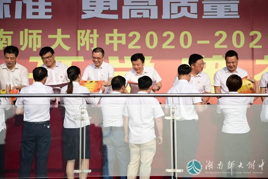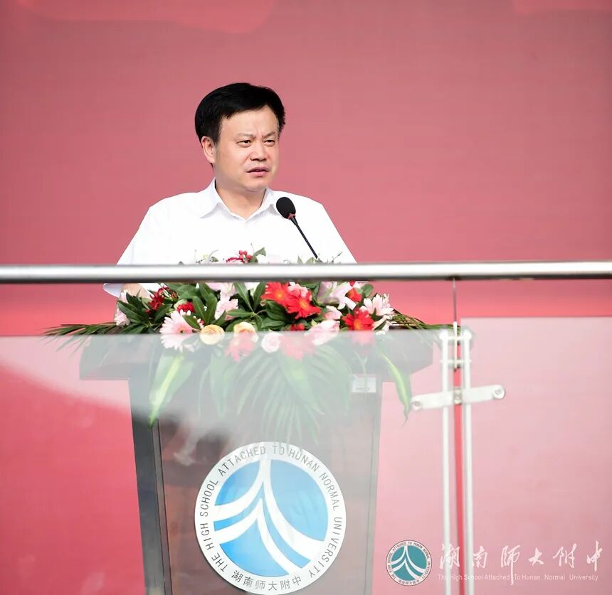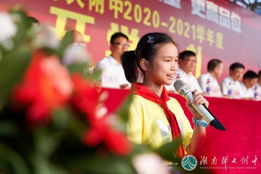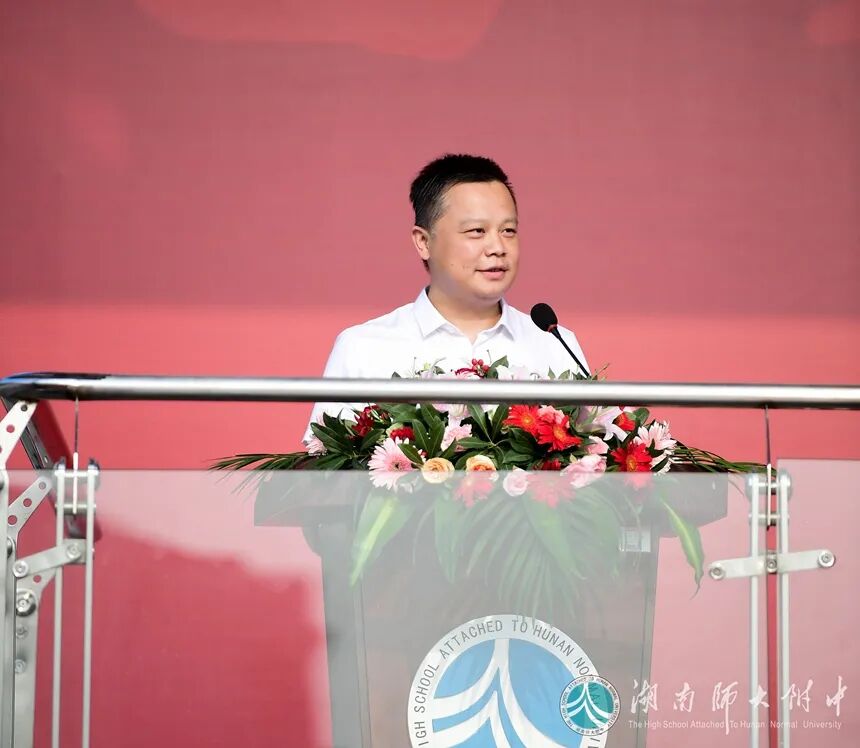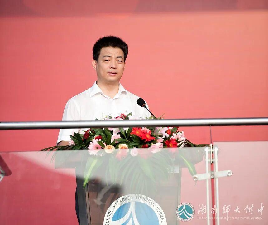 校长谢永红,党委书记黄月初,副校长陈迪勋,纪检书记李春莲,副校长苏建祥、蔡任湘,挂职副校长杜军,学术委员会主任、特级教师、正高级教师何宗罗,教学指导委员会主任、特级教师、正高级教师汪训贤,教师委员会主任杨群英,国家万人计划教学名师、国务院特殊津贴人员、特级教师、正高级教师肖鹏飞,校家长委员会主任刘红荣,新生家长代表曾政华,优秀毕业生代表、北京大学2020级新生徐栩涛,全国学联二十七大代表、校学生会主席刘叶子在主席台就坐。全校师生以及湖南师范大学附属高阳学校270余名优秀师生代表参加。团委书记李钊主持仪式。