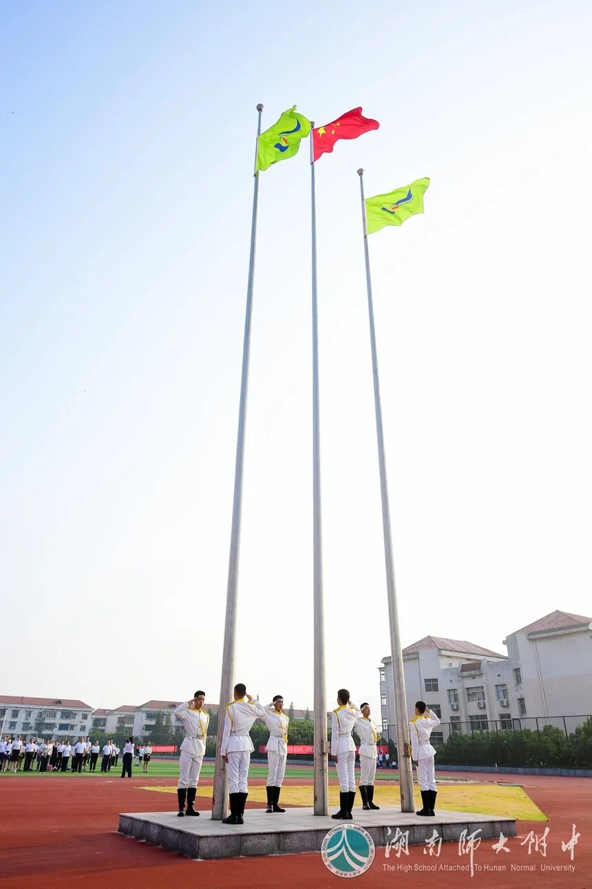 首先举行庄严的升旗仪式。奏唱国歌、校歌,国旗仪仗队升起国旗、校旗。