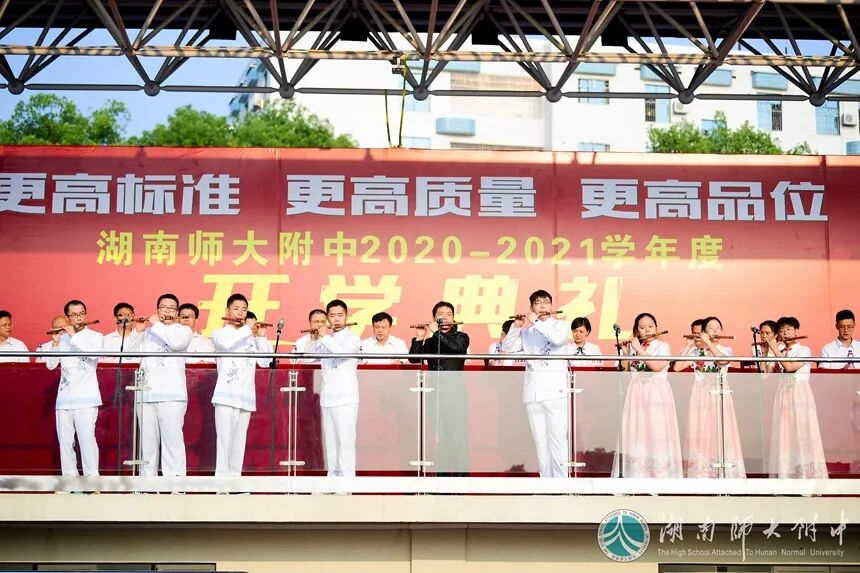 8月31日上午,田径场上响起热情明快的笛声。红枫艺术团一曲喜气洋洋的《扬鞭催马运粮忙》拉开了学校2020-2021学年度开学典礼的大幕。