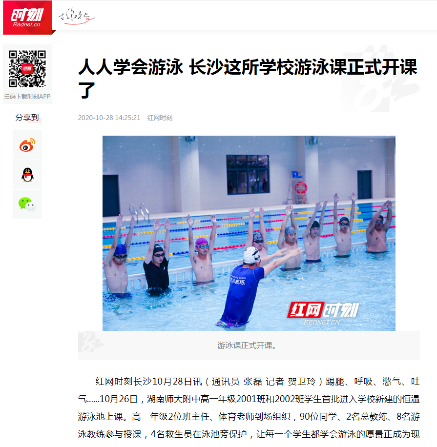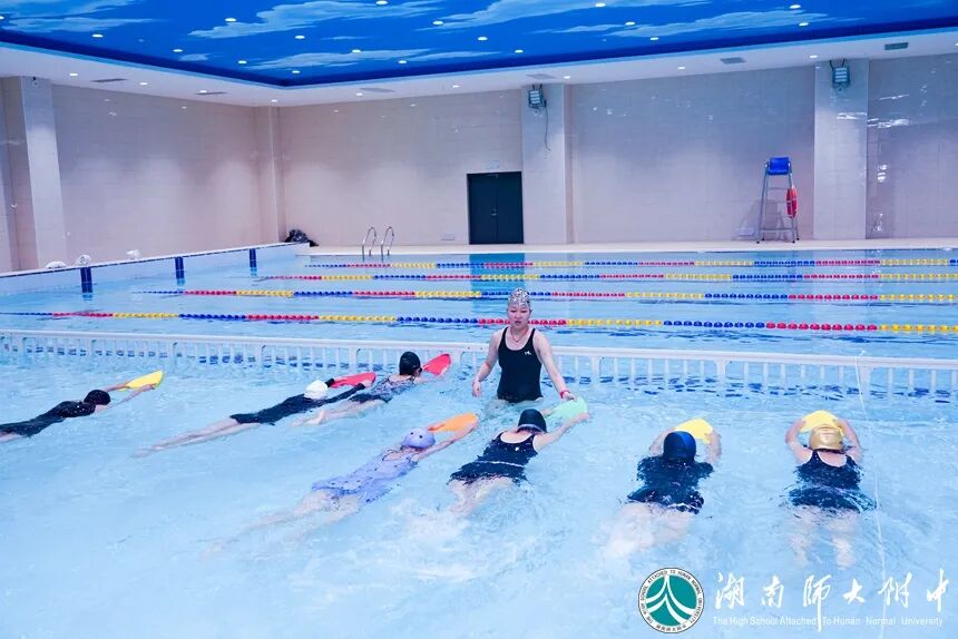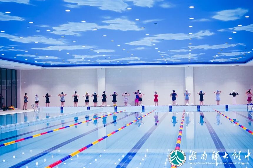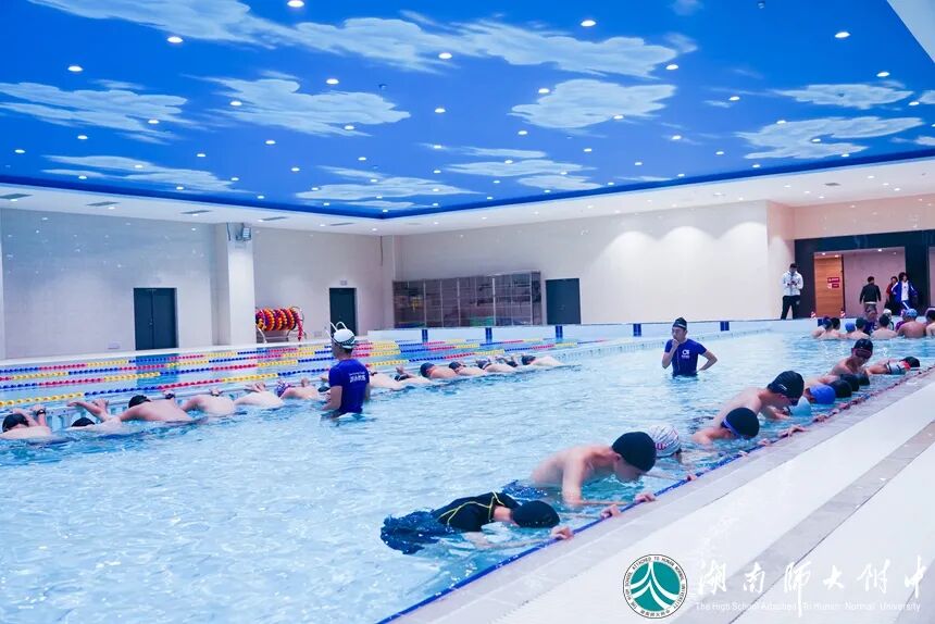 湖南师大附中一直致力于推动课外体育活动课广泛开展,引导学生走出教室,积极参与阳光体育运动。为了丰富学校“体能+兴趣+特长”的课程特色,丰富“一校多品”的课程体系,学校从2018年开始规划兴建恒温游泳池,为学生开设游泳课。游泳课为学校选择性必修课,每学期开设8课时,要求每位学生至少学会游泳并掌握一种泳姿。