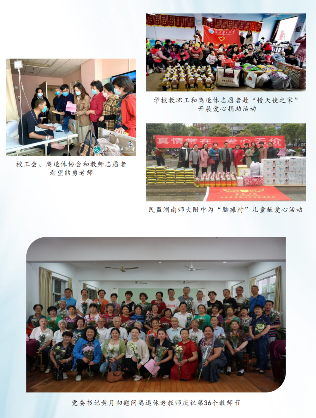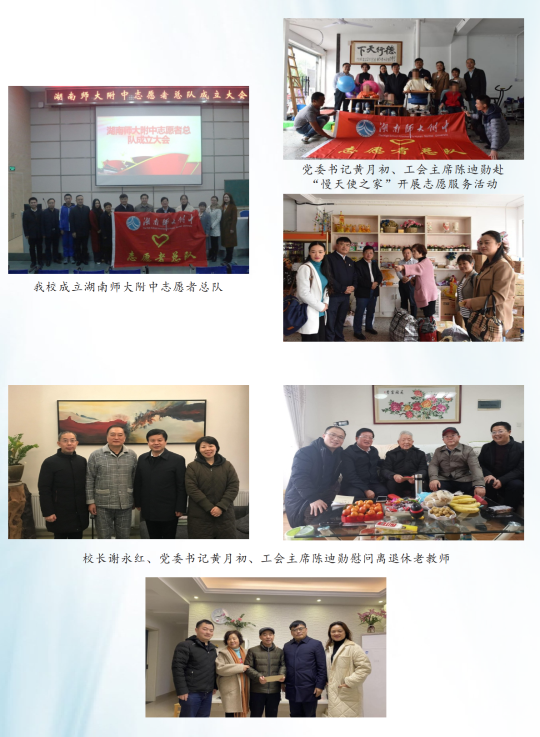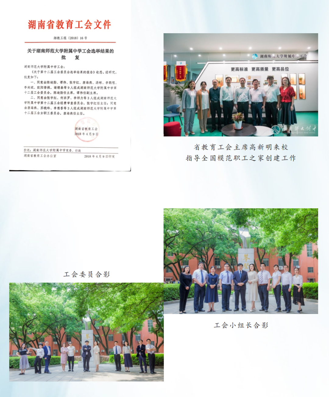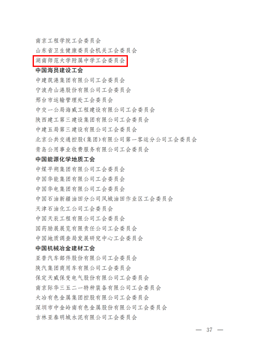 我校大力加强工会建设,持续开展“模范职工之家”创建活动,2004年被省总工会评定为湖南省模范职工小家,2006年被省总工会评定为湖南省模范职工之家。学校工会始终高举新时代中国特色社会主义伟大旗帜,坚持走中国特色社会主义工会发展道路,大力弘扬“家”的文化、营造“家”的氛围,紧紧围绕学校中心工作,切实履行工会职责,依法维护职工合法权益,不断增强工会组织活力,积极开展工会会员活动,全力打造规范、和谐、温暖、平安、创新的五型职工之家。