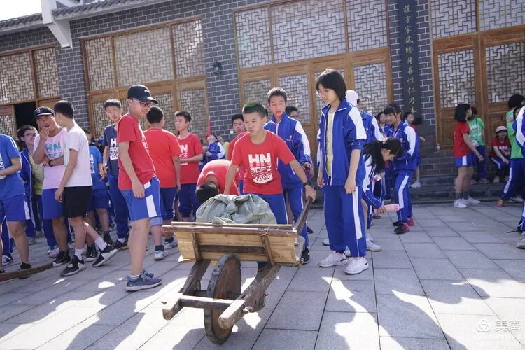 “扁担挑水”、“独轮车运粮”等等一系列竞技游戏项目在广场火热进行,同学们以小组为单位,依次体验挑战这些需要体力、智力、耐力的劳动。