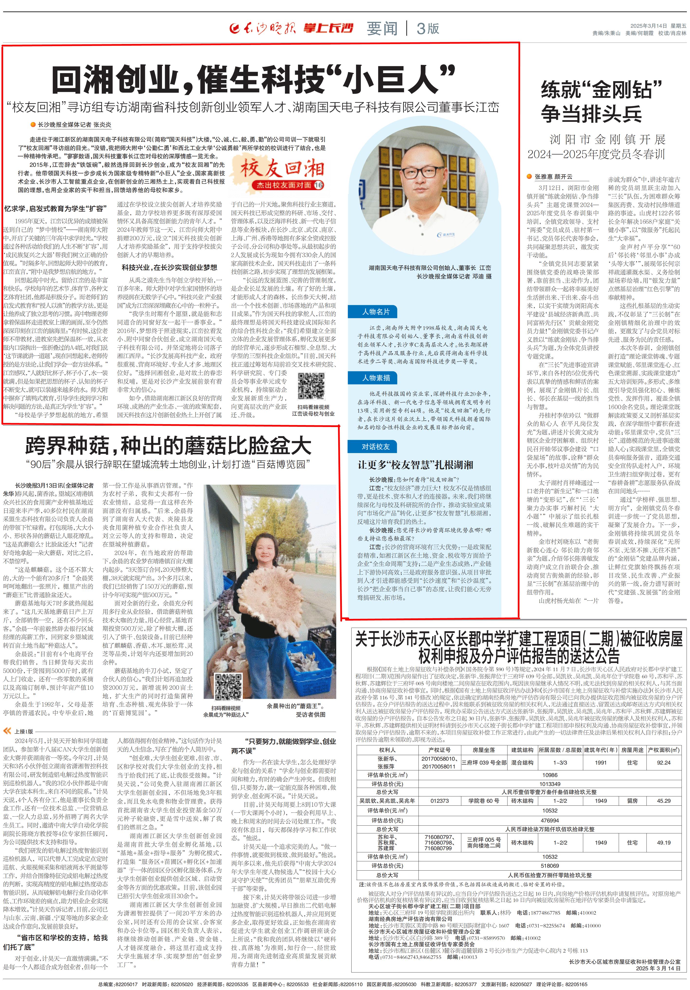 长沙晚报全媒体记者 张炎炎江峦,湖南师大附中1998届校友,湖南国天电子科技有限公司创始人、董事长,湖南省科技创新创业领军人才,长沙市C类高层次人才。他长期深耕于高科技产品及服务行业,先后获得湖南省科学技术进步二等奖、湖南省国防科技进步奖一等奖。