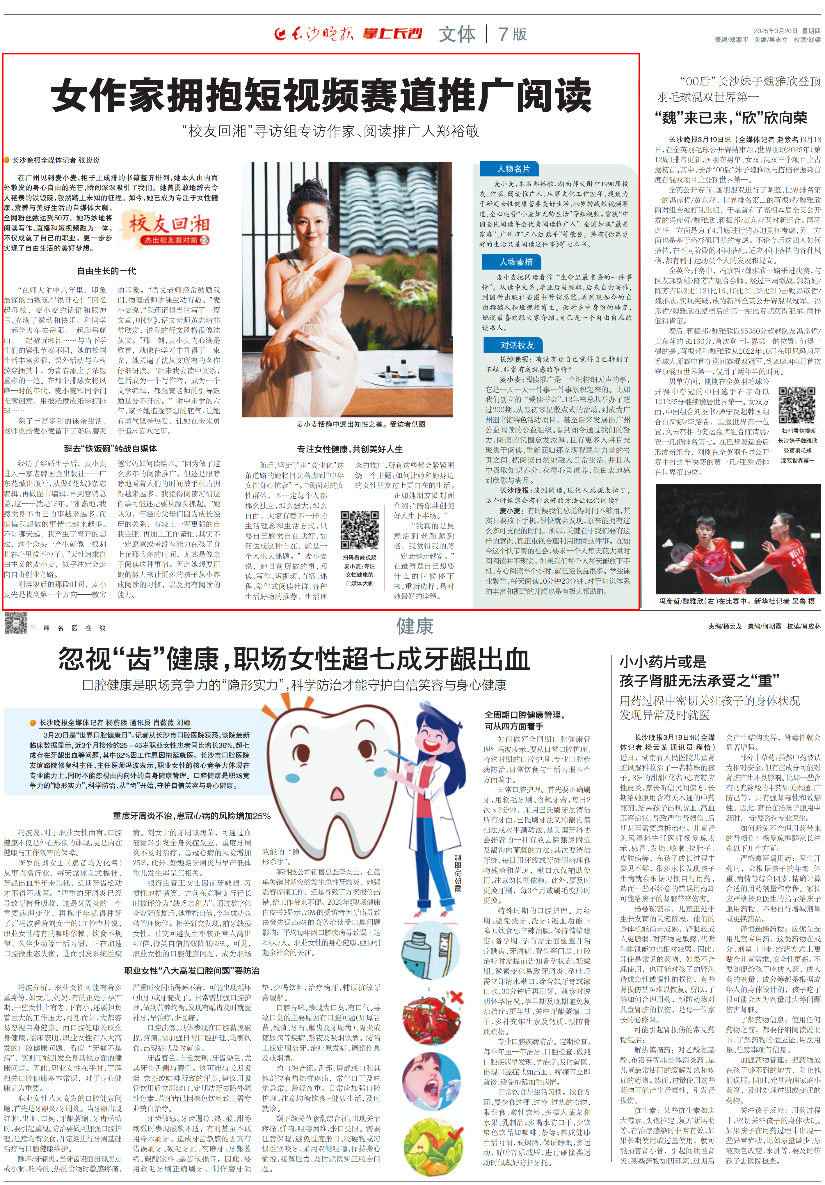 麦小麦,本名郑裕敏,湖南师大附中1990届校友,作家、阅读推广人,从事文化工作26年,现致力于研究女性健康营养美好生活,49岁转战短视频赛道,全心运营“小麦姐无龄生活”等短视频。曾获“中国全民阅读年会优秀阅读推广人”、全国妇联“最美家庭”、广州市“三八红旗手”等荣誉。著有《你离更好的生活只差阅读这件事》等七本书。
